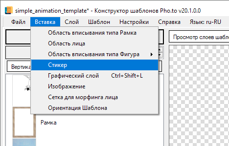 Создание шаблона с анимированным стикером