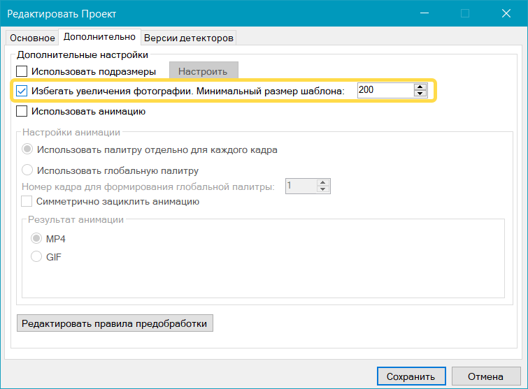 Если размер пользовательской фотографии меньше шаблона, она будет растянута до его размеров, что может привести к снижению качества изображения ("мыльность").