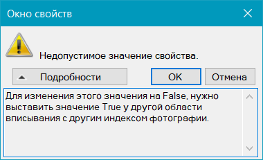 для параметра , необходимо для другой фотографии (с другим индексом) установить значение . Это автоматически изменит для областей вписывания с другими индексами значение на .По умолчанию
