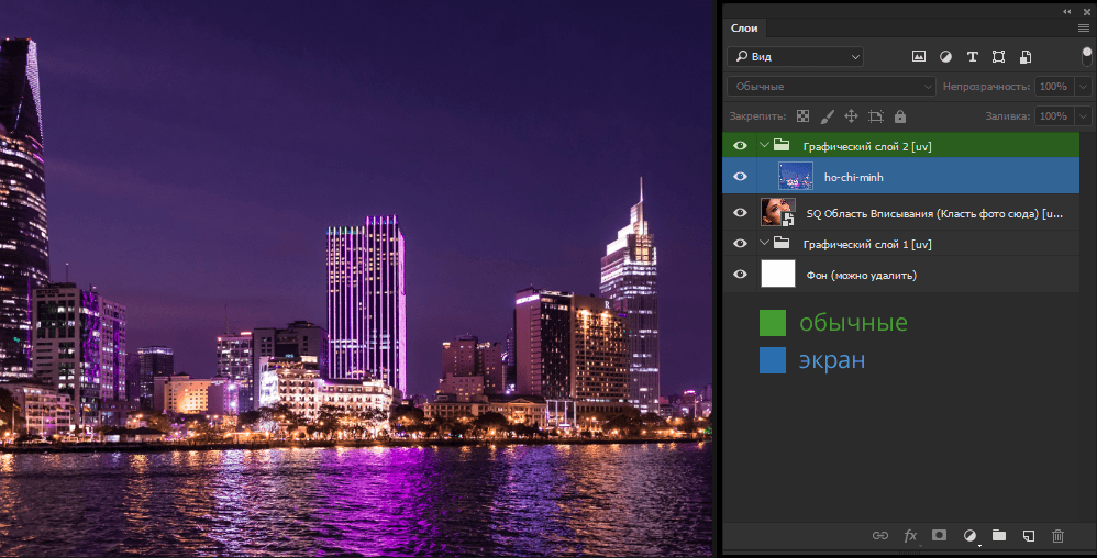 Даже многим опытным пользователям Photoshop не всегда известна разница между блендингами Пропустить (Pass Through) и Обычные (Normal), ведь на первый взгляд, эти блендинги работают одинаково, но весомую разницу между блендингами можно увидеть на довольно простом примере: