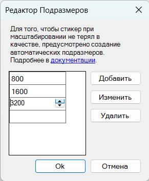 Для уже созданных шаблонов типа Стикер можно редактировать/добавлять/удалять значения подразмеров, выбрав в меню