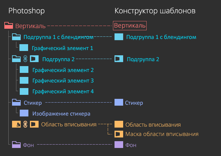 Сравнение структуры в Photoshop и в Конструкторе шаблонов