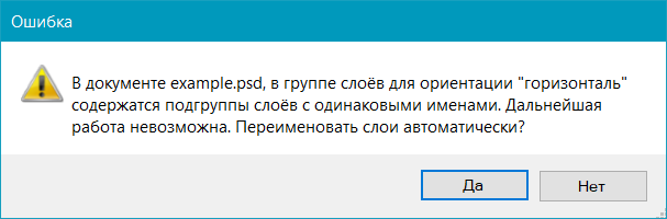 Если в PSD-документе будут обнаружены элементы с совпадающими названиями, то при перечитывании Конструктор шаблонов предложит переименовать их в автоматически.