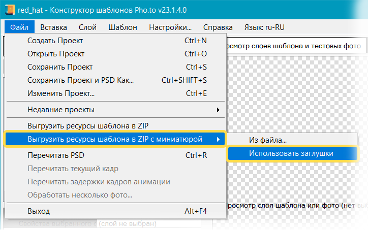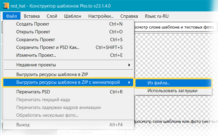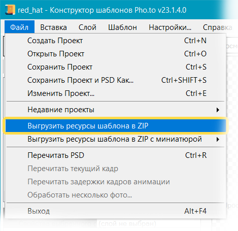 в строке меню. Конструктор шаблонов создаст в указанной папке ZIP-архив с двумя папками:-
