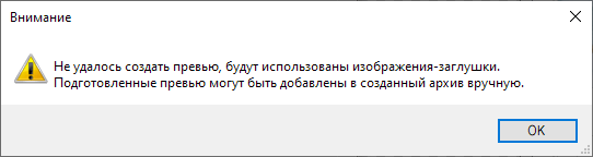 Если автоматическое создание миниатюры невозможно, в выгруженном архиве будут использованы картинки-заглушки и выдано предупреждение: